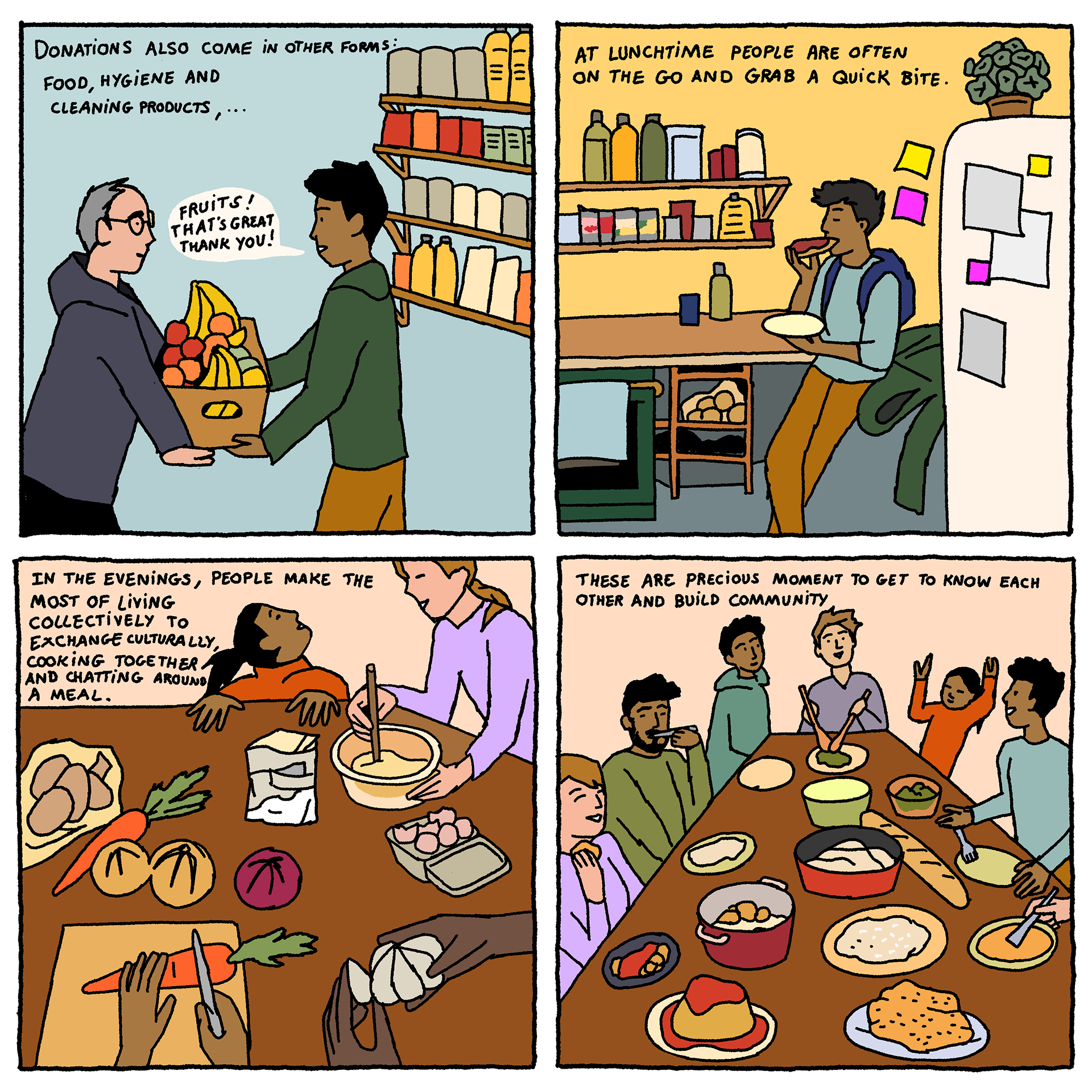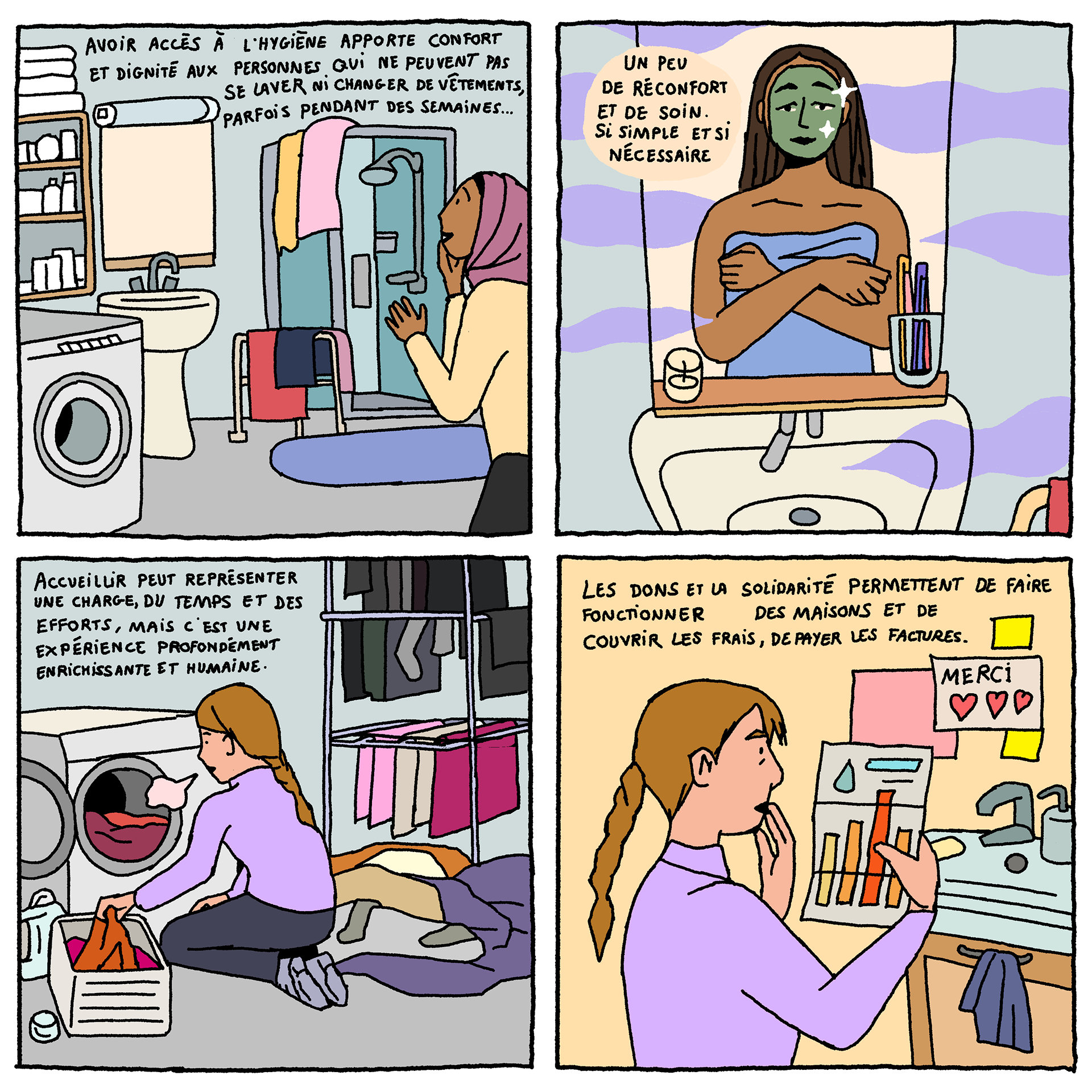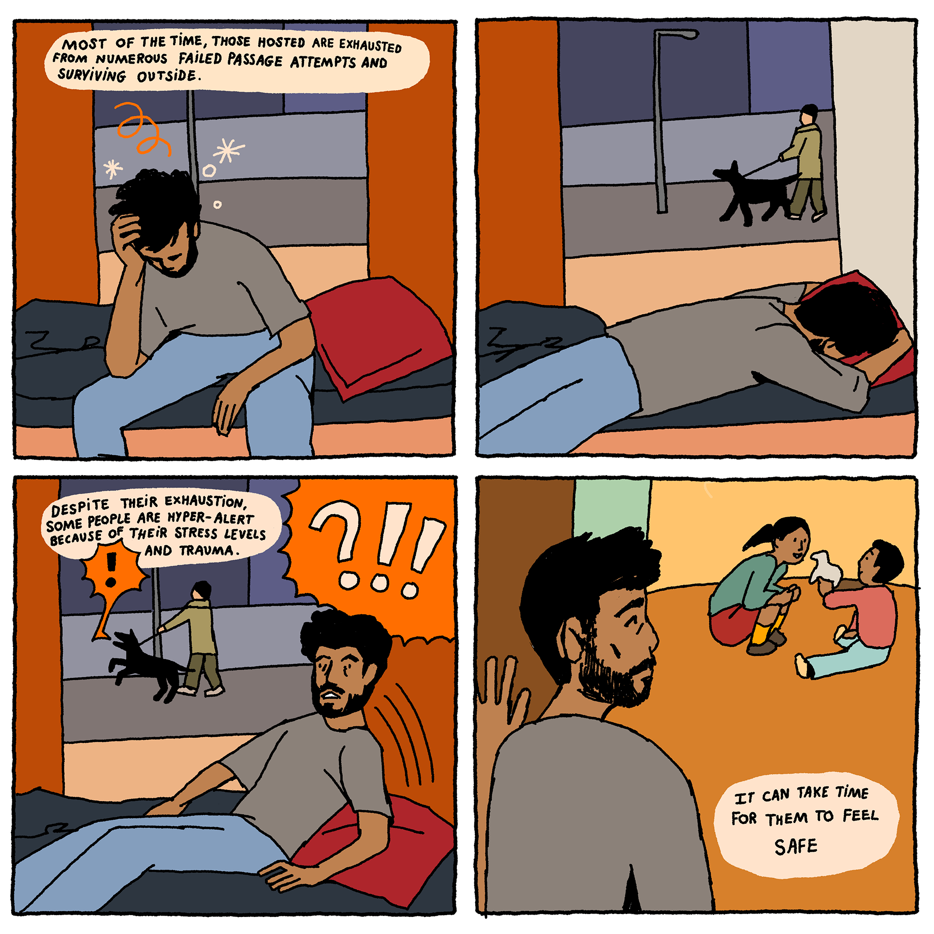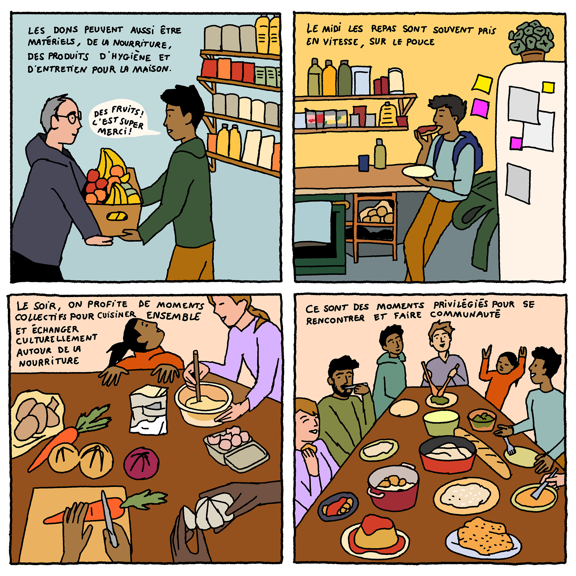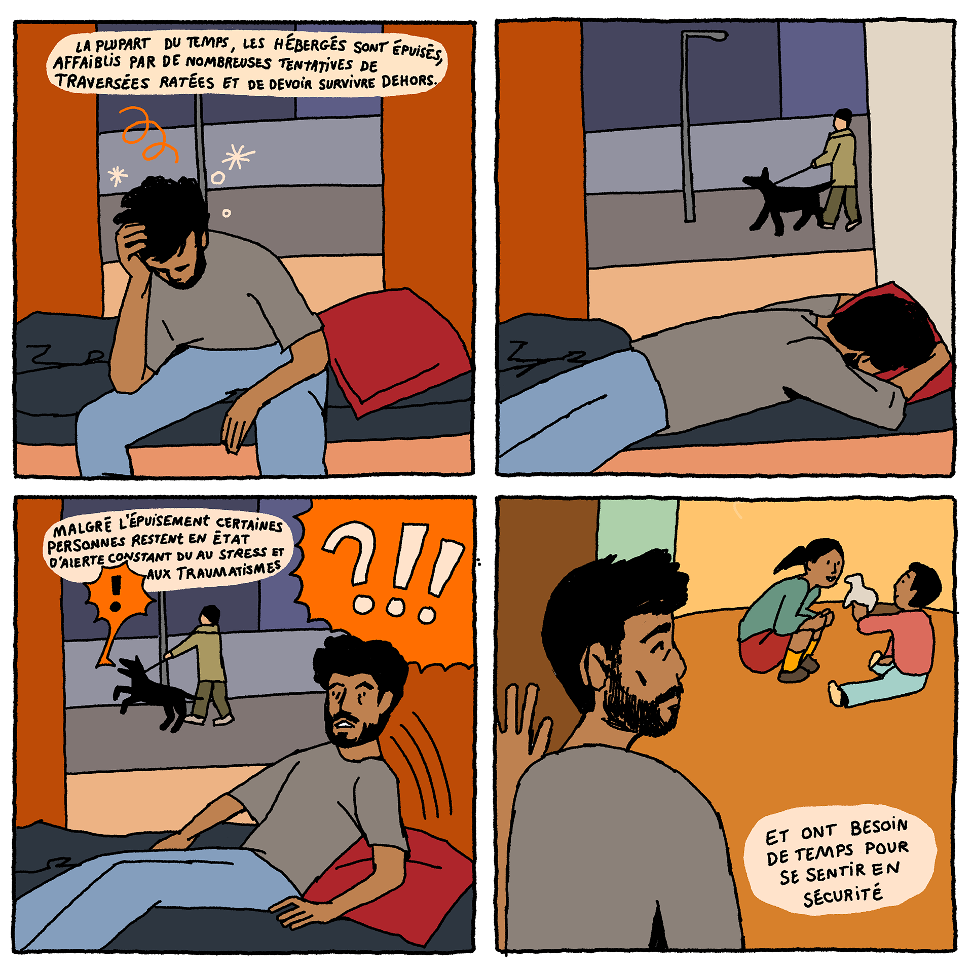 Solidarity Houses - a comic-strip (available in French and English) by artist Loup Blaster exploring how citizens organise themselves to welcome exiled people amidst repression from the authorities (See below)